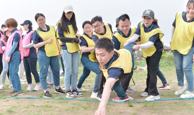 Le travail n'est pas seulement limité entre le bureau et la maison, bien sûr, il existe une activité de construction d'équipes pouvant partir à tout moment.